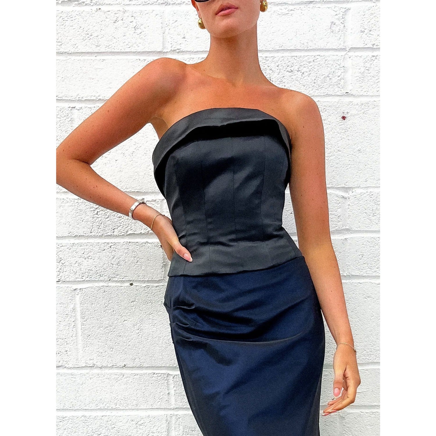 - Satin feel bustier with lapel design across the top. Flattering seam design and light boning