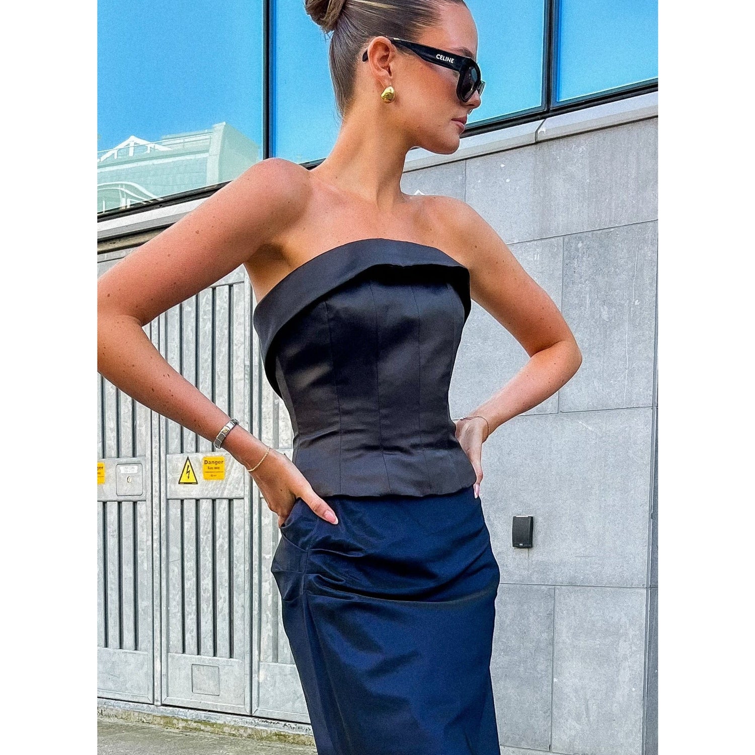 - Style notes: good stretch to fabric, seen here styled with bodysuit. Can be worn off shoulder