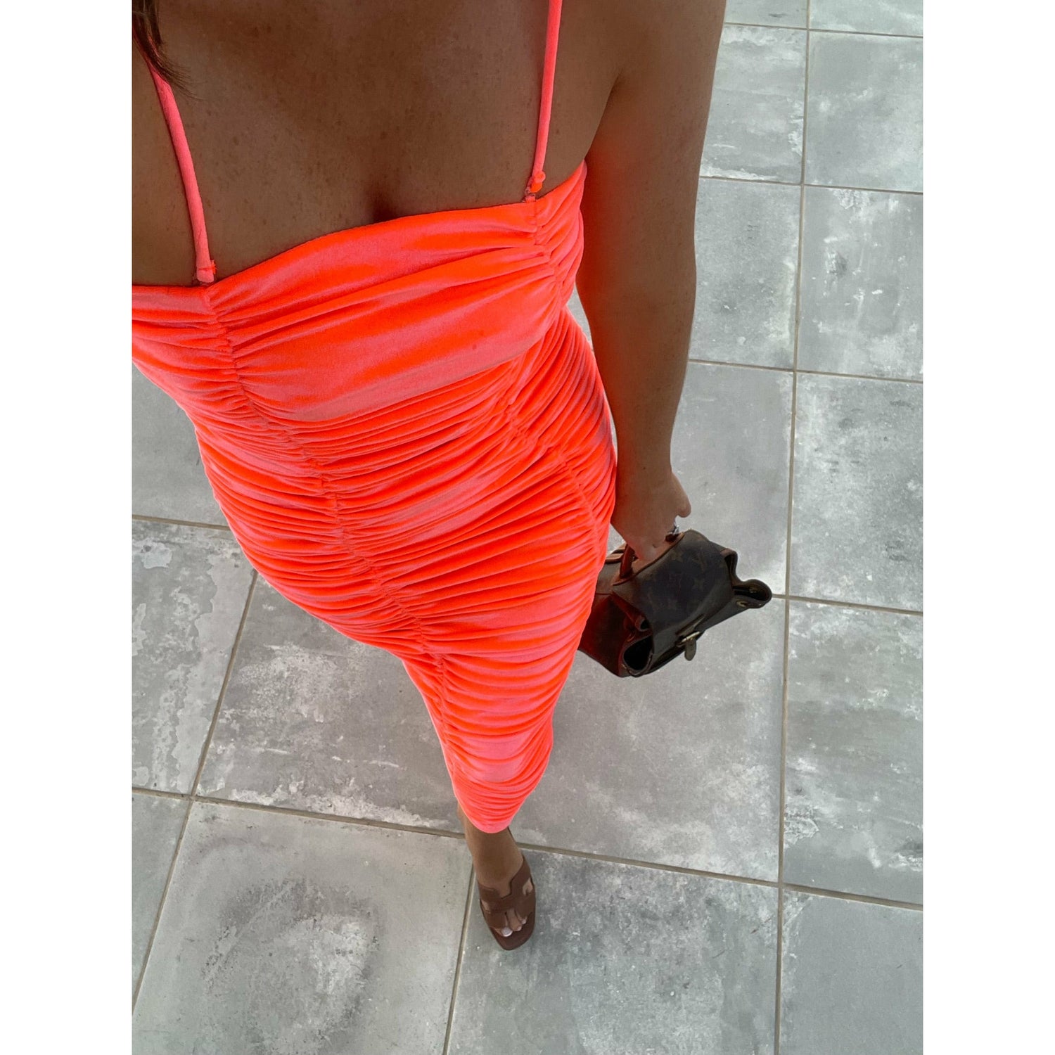 Christopher John Rogers Wiggle Ruched Stretch Velvet Dress in Bright Orange