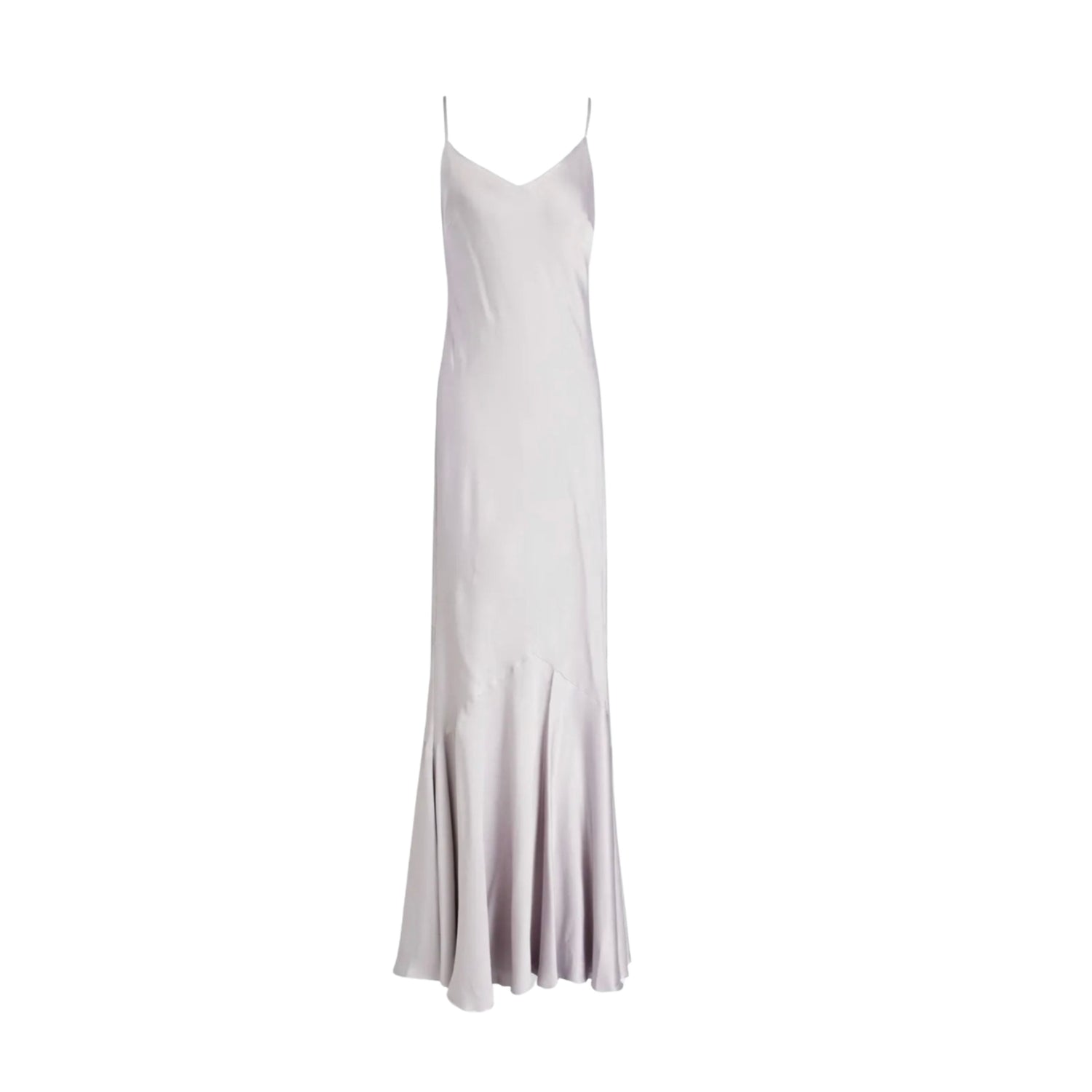 A classic maxi slip dress with a V-neck and adjustable straps.