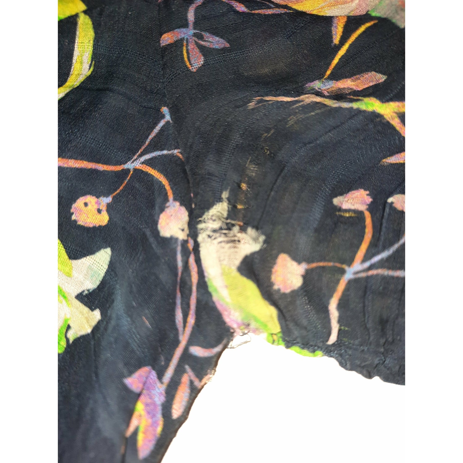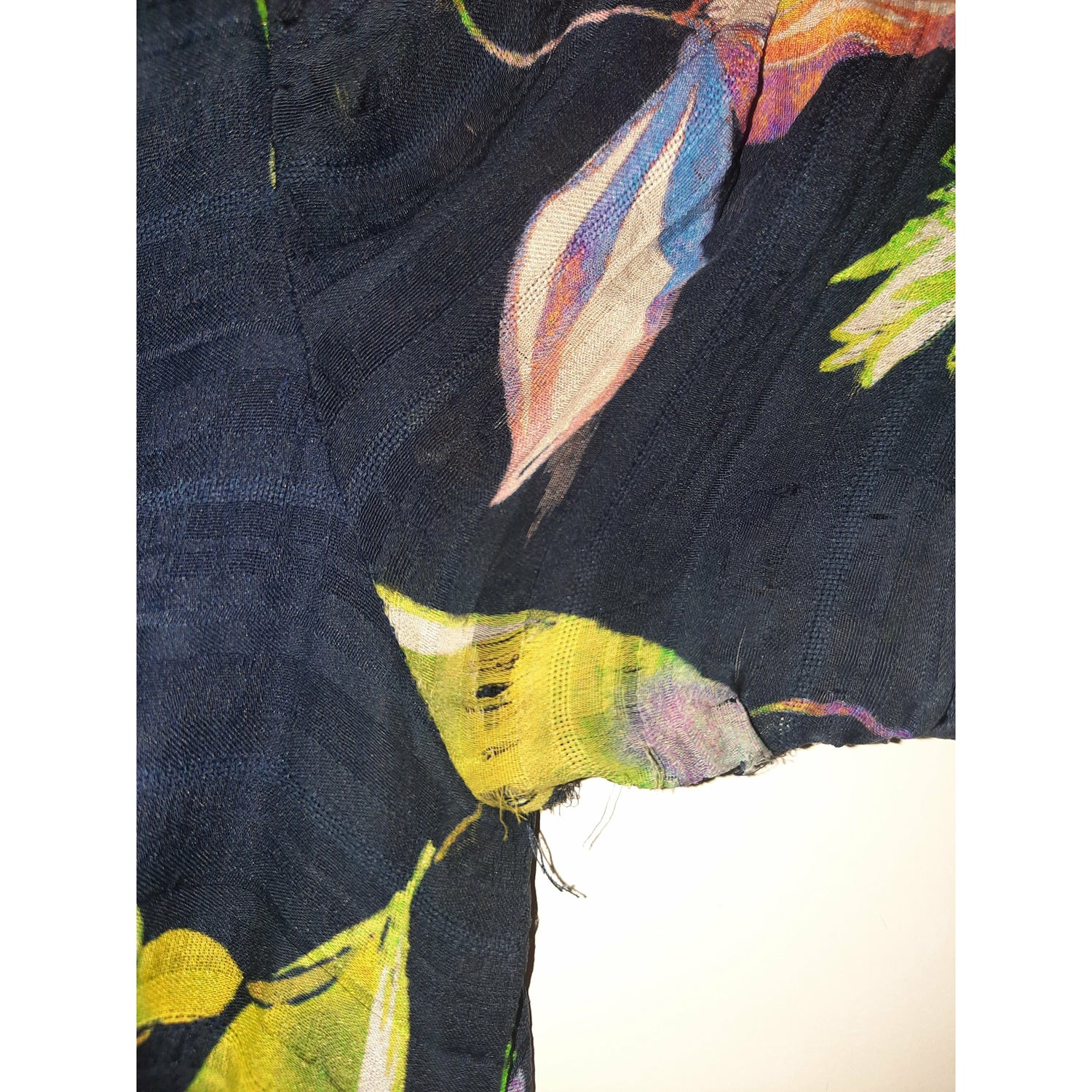Has had some fun. Some fraying around sleeves. See pictures for more information.