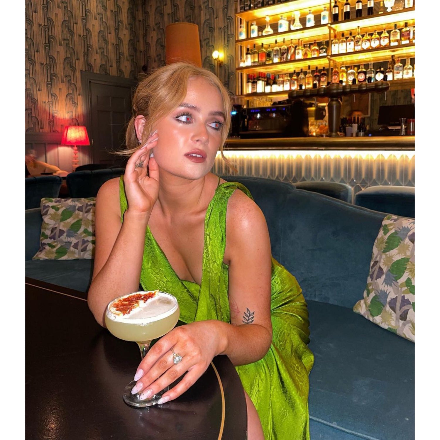 The Navarra dress is a slinky, luxurious silk in a muted shade of lime green, it's finished with a chic snake print.