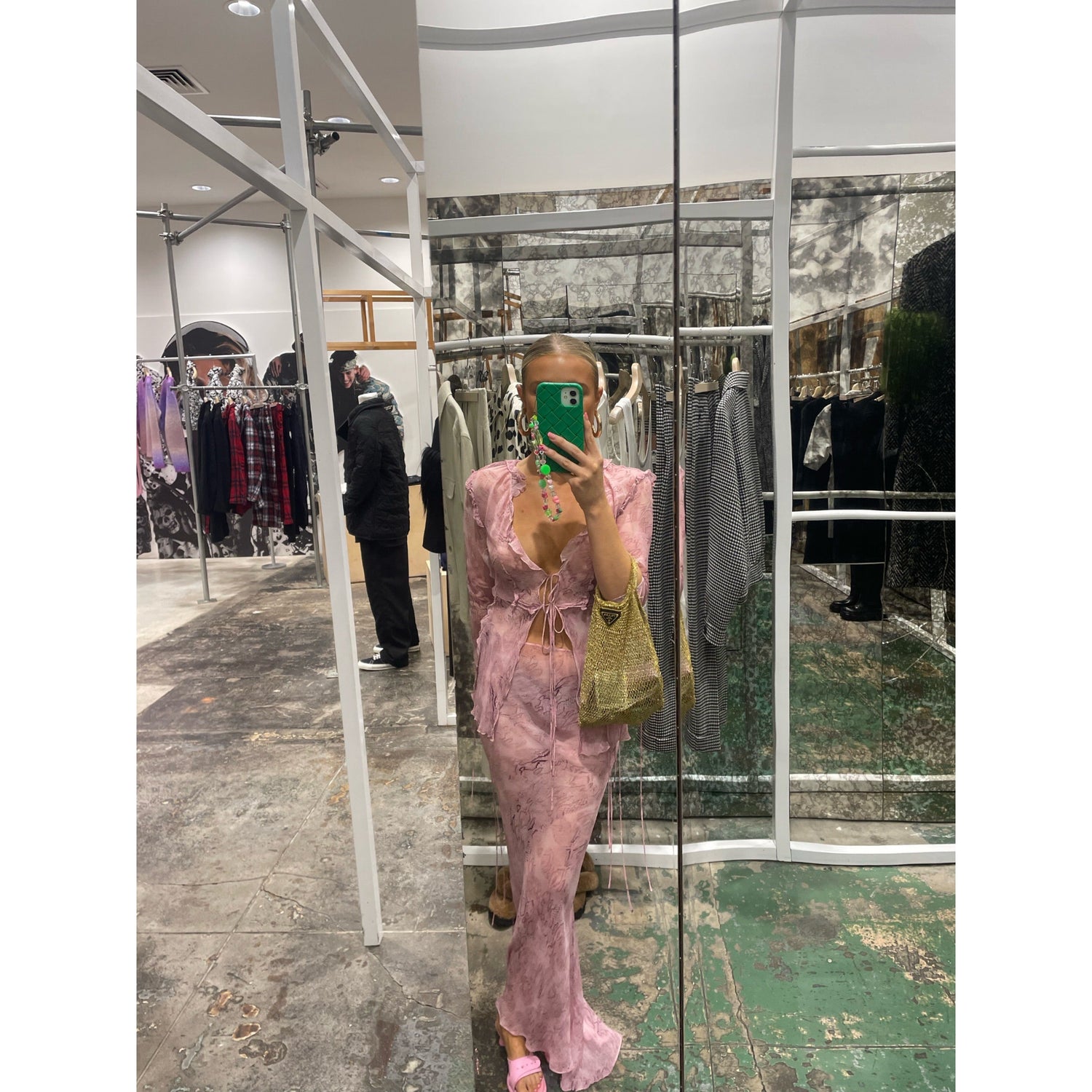 A silky, fluid slip skirt crafted in a luxe crinkle viscose, the Cobra has added drama courtesy of a mini floor-skimming train at the back. Printed with a soft and subtle snake print against a moody, grunge-fuelled shade of pink, it’s an ultra-versatile blend of ease and elegance you'll want to wear forever.